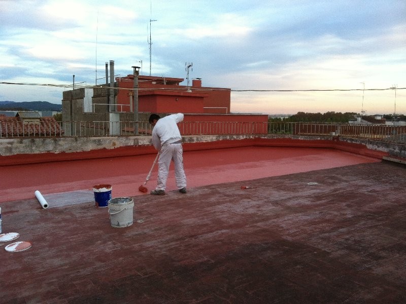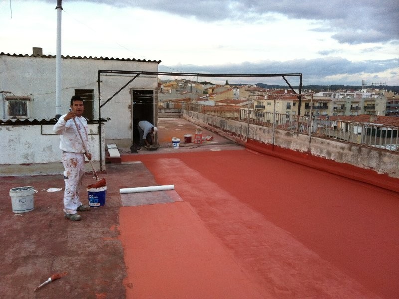 Impermeabilización de terrazas o cubiertas, preparacióny reparación de las zonas con material en mal estado, aplicación de una capa selladora especial poliuretano, aplicaión de una capa de poliuretano líquido con una malla de refuerzo, dos capas finales de el mismo poliuretano transitable.